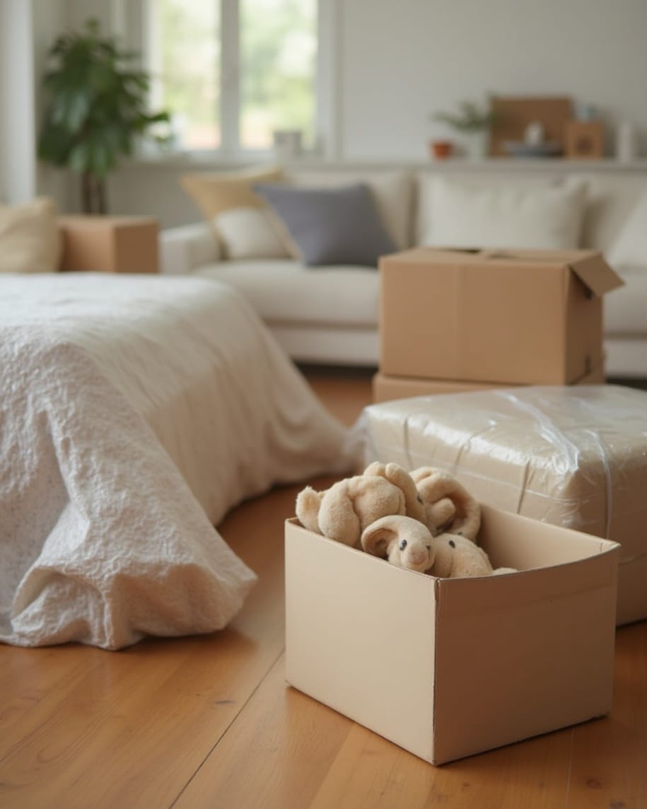 At the destination, items are placed into designated rooms to make unpacking easier and reduce disruption.
